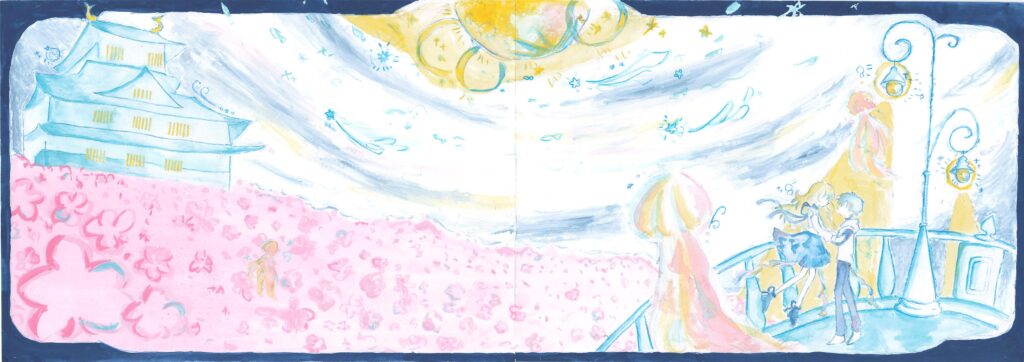 白河氏「画面を横断する空とパステル調の色彩が大きな空間を感じさせている。」